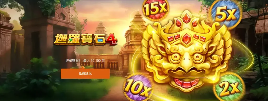 RSG電子《迦羅寶石4》 結合了經典的老虎機玩法與創新的倍數疊加機制,讓每一次旋轉都充滿神秘與期待。